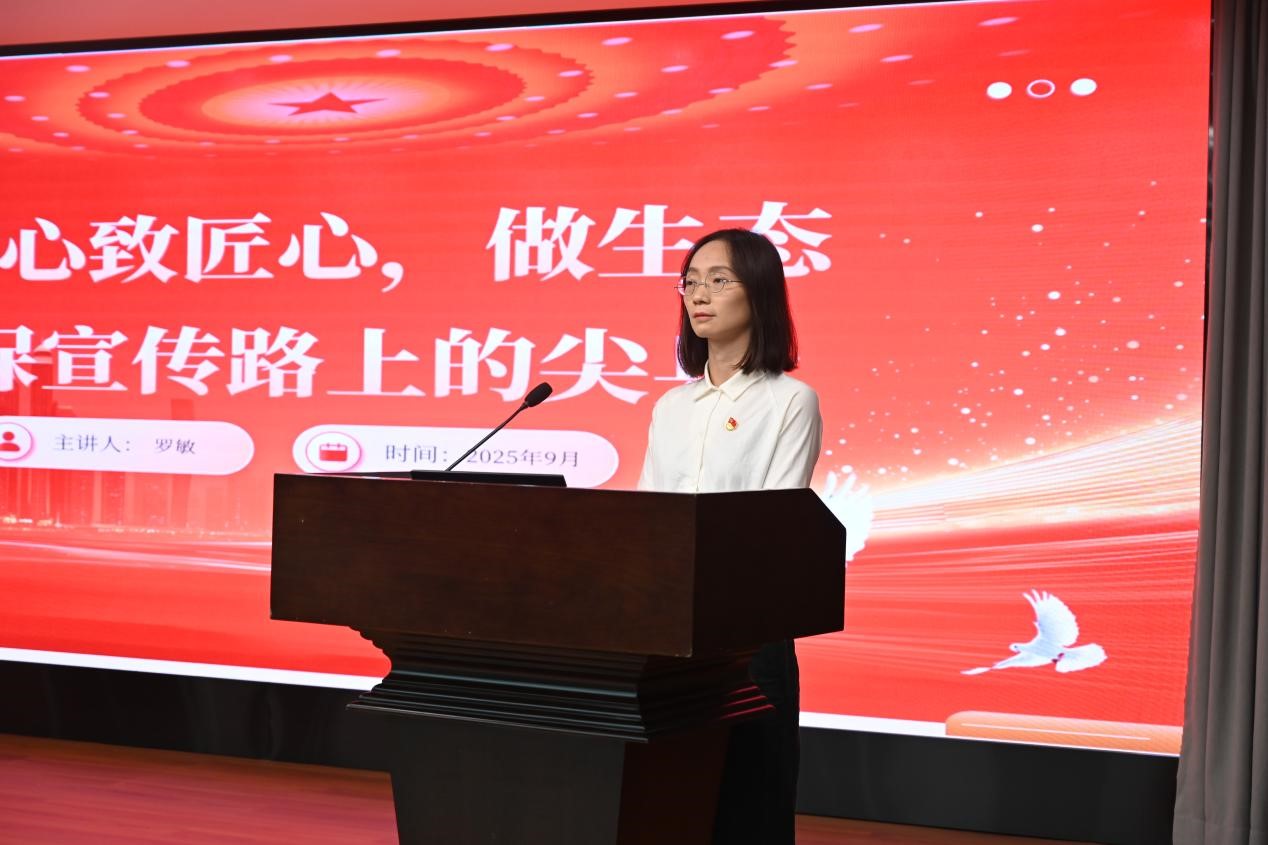 宣講會(huì)上,獲得2024年度中央和國(guó)家機(jī)關(guān)“四好”黨員榮譽(yù)稱號(hào)的羅敏同志以《以初心致匠心,做生態(tài)環(huán)保宣傳路上的尖兵》為題,講述在編輯崗位上深耕細(xì)作、遇到困難時(shí)迎難而上,不斷踐行初心使命、勇于擔(dān)當(dāng)作為的奮斗故事。