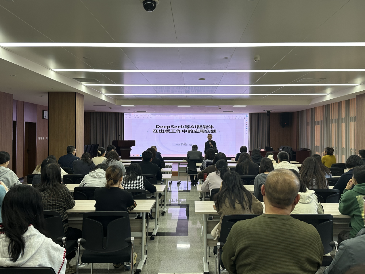 2025年11月13日下午,集團公司特邀人民郵電出版社圖靈公司總編輯安達做題為DeepSeek等AI智能體在出版工作中的應用實踐的培訓。培訓由集團公司總編輯何家振主持,全體職工參加此次培訓。